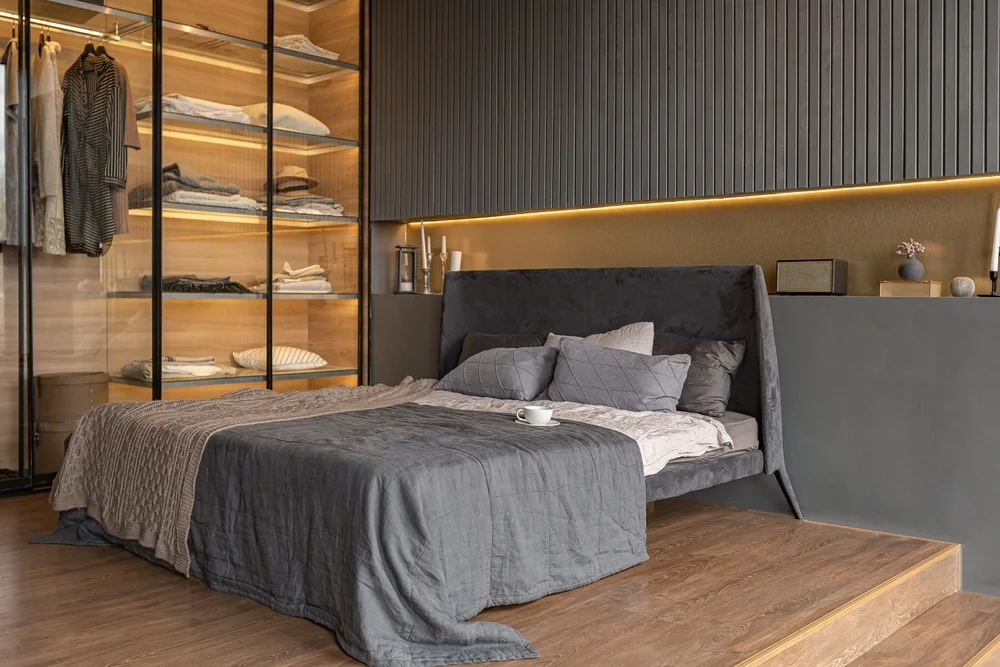 Beyond storage, your wardrobe design has a major impact on how spacious the entire room feels. The right combination of finishes and proportions can open up the room significantly.